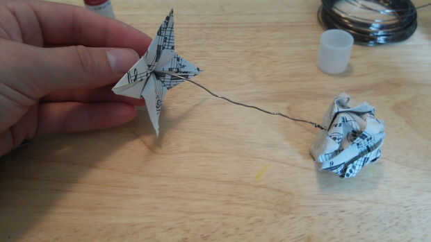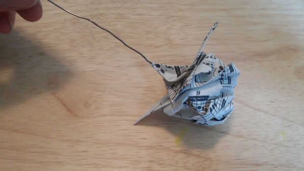 1. Tome el extremo del alambre y empujar a través de la parte inferior de la rosa.