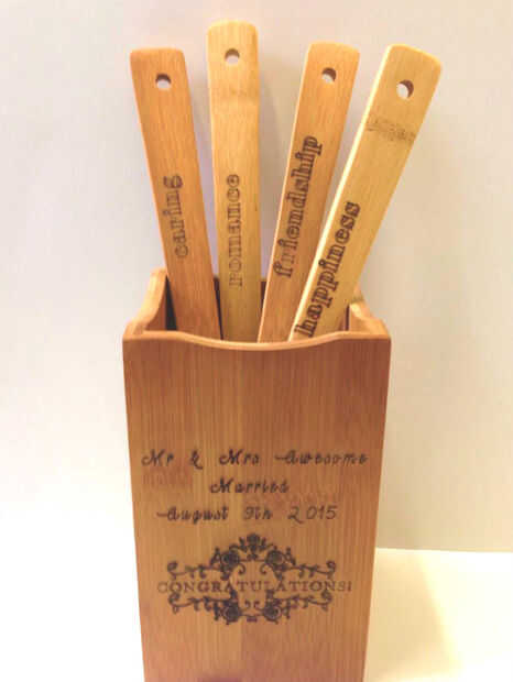 Muchos registros de boda contienen listas de artículos para el hogar funcional, pero un poco aburrida. Pero, los utensilios todos los días mucho más uso de los decantadores de vino o la terrina de moldes... igual los días aburridos de un matrimonio que superan a las ocasiones especiales. Habrá un gran muchos días donde te levantas, vas a trabajar, vamos Inicio, cocinar, limpiar y luego colapsar frente a la TV o del ordenador portátil para unas pocas horas luego cama. ¿Y sabes qué? Es una cosa maravillosa! Un buen matrimonio es lo que pasa todos los días inmejorable entre los grandes eventos. Este regalo de boda celebra. Utensilios cotidianos que celebran las pequeñas cosas que, mucho después de que se ha comido el pastel, matrimonio, día a día - cuidado, amistad, felicidad y un poco de romance ;-)