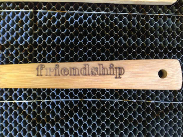 I laser grabado al agua fuerte esta tabla de cortar como un regalo en Techshop Chandler. Las letras fueron escritas en Illustrater de Adobe que se carga en los equipos golpeó imprimir y elegir el espesor de la Junta y eso es sobre lo sencillo que es.