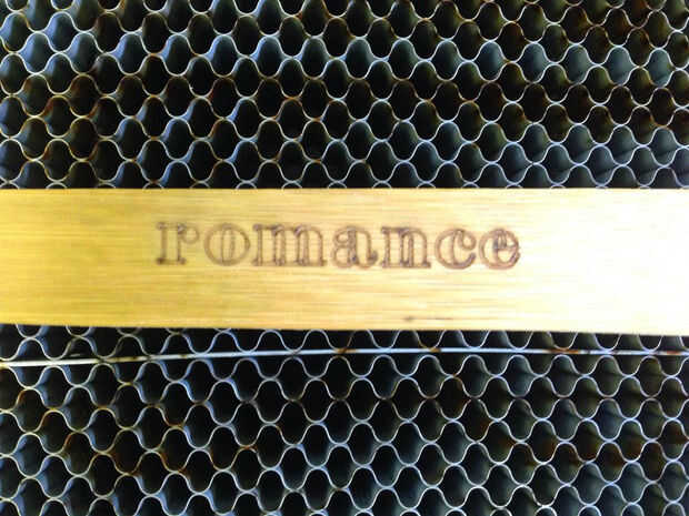 A continuación, se graban los utensilios. Cada uno está encintado grabado como el láser tiene que ser colocado, centrado y posición cada vez.