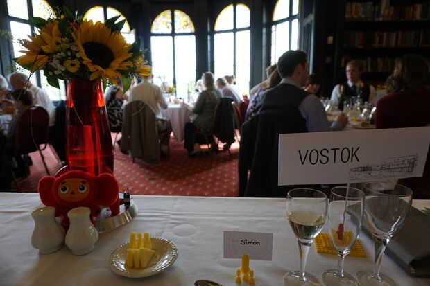 Nos decidimos por un tema de espacio para nuestra boda para un número de razones, ambos queremos que la ambición y la emoción de la exploración espacial, tecnológico desafiar presenta y es muy apropiado para simbolizar la Unión de un británico y un ruso con el área este y oeste realmente cooperaron en (después de un poco de competencia 'amistosa'!).