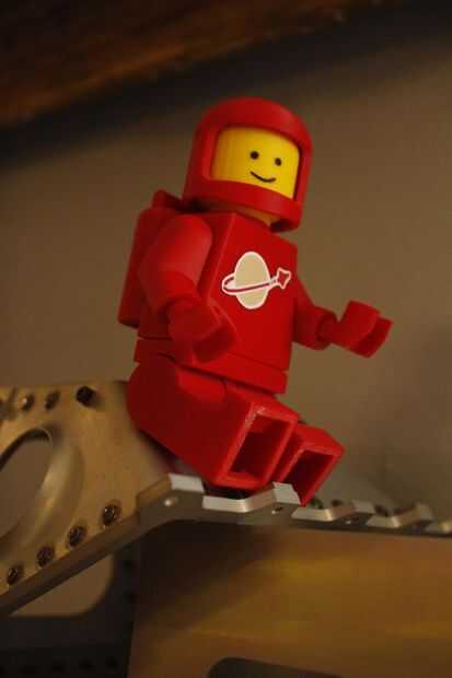 El rey de todos los pequeños astronautas de Lego era una astronauta rojo gigante 3D imprimí en varias partes. Como sus súbditos más pequeño es totalmente desechables y fue impreso de dos diseños disponibles en Thingiverse: Lego minifig y los accesorios de astronauta. Él salió muy bien, y sólo necesita la impresión su insignia y su cara cuidadosamente sharpie-ing en.