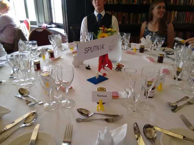 Me dise que lindo cohetes pequeños para sostener las tarjetas de lugar, estos cohetes 3D impreso. Terminé usando dos diversos diseños y estos se alternan alrededor de cada mesa.
