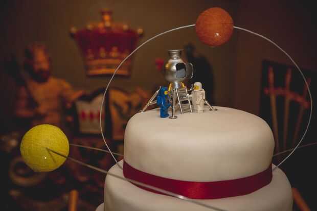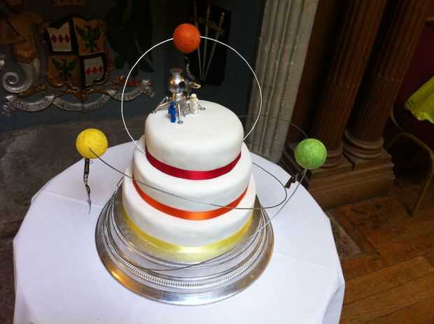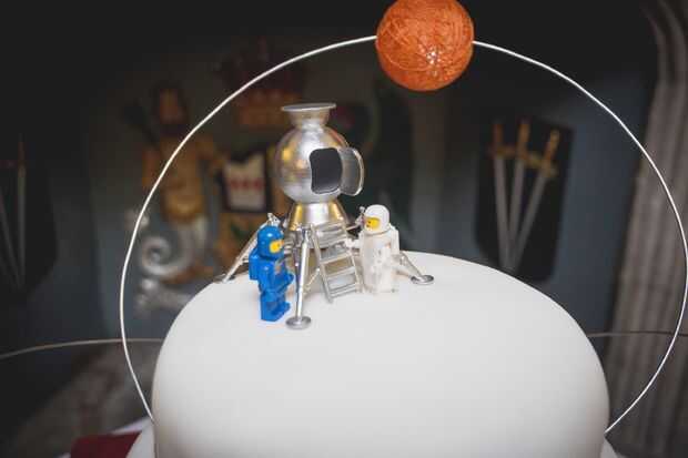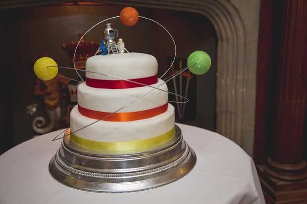 El pastel fue diseñado para tener los 60 look de la era espacial, combinando colores fuertes con las bolas de planeta 'órbita' en anillos de metal. No se muestra muy bien en las fotos pero las bolas eran demasiado brillante.