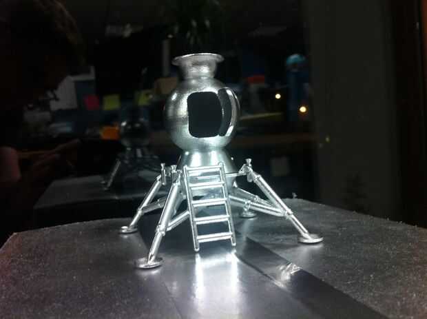 Para la lander originalmente había considerado el uso de Lego pero encontró esto hacer el pastel demasiado visualmente quisquilloso y perder parte de la elegancia. En cambio he diseñado una versión simplificada de la escala de Lego de la lander lunar soviético LK. Esto fue desarrollada durante la carrera espacial, pero problemas con el vehículo de lanzamiento N1 significan que nunca fue a la luna (sin embargo hizo al Museo de Ciencias de Londres recientemente, ver la última foto). Tuve la lander L pastel SLS impreso para un acabado más liso (busque en 3Dprintuk, shapeways o i.materialise SLS barato) y luego la rociaron con varias capas de pintura de aerosol del cromo espejo.