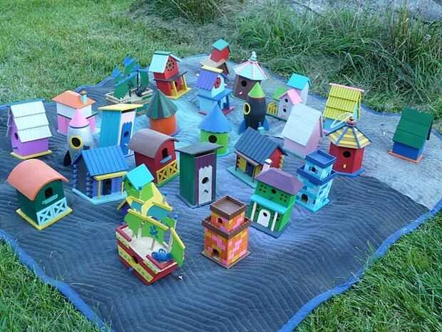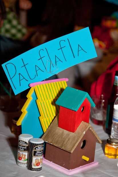 Compramos cajas nido de madera del arte de Michael mientras estaban a la venta y pintura acrílica con la teoría de que podría ser utilizado posteriormente para manualidades al azar. Esto fue mucho más fácil y barato que Ramos y floreros mientras montaje con nuestra boda ecléctica del barn. Rociar los nidos con acrílico para sellarlos, agregó alambre y etiquetas (tema musical) para las tablas y poner tarros de miel alrededor de los centros de mesa para los favores.