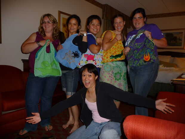 Muchos de los diseños de ropa de Melody utilizan apliques de fieltro, por lo que ella quería esta técnica para ser integrado en las bolsas que también dio sus damas de honor. Utiliza una bolsa en mano como un patrón, eligió a las telas ya en su escondite y hecho apliques personalizados para cada Dama de honor.