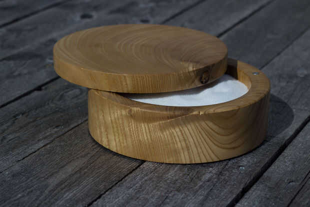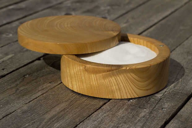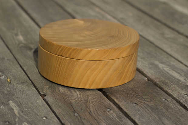 Su hecho de la ceniza y acabado con una etapa 3 buff y una cera seguro de alimentos. Pivota en un punto con un broche de metal y se mantiene cerrado con 2 imanes de tierras raras.