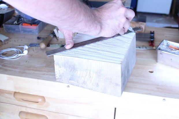 Después de elegir el bloque de madera de la marca se centra en la parte superior e inferior utilizando una regla de esquina a esquina. Esto no tiene que ser perfecto. acabas de llegarlo más cerca posible. No creo que el bloque había, tenido en todos los bordes cuadrados en él.