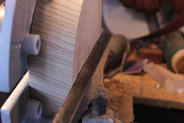 Usé el raspador para suavizar la parte inferior. una cosa a recordar aquí es que "es necesario un buen corte plano. Me resulta más fácil quitar un poco de material más del centro de la parte inferior y deja un borde que es agradable y plana. Una vez que lo tienes liso, acabado arena abajo todo el camino a través de grano 400. una buena manera de decir cómo plana que es, es utilizando una regla o una regla. Coloque el borde de la regla contra la parte inferior de la base y ver lo que se está pegando hacia fuera y lo que no, mirando el vacío. Usé mi luneta en la última foto en este paso para mostrar cómo hice el fondo ligeramente cóncavo y un borde alrededor del borde exterior a la izquierda. Lamentablemente la cámara no muestra lo que bien por lo que tienes que tomar mi palabra para ella. :)