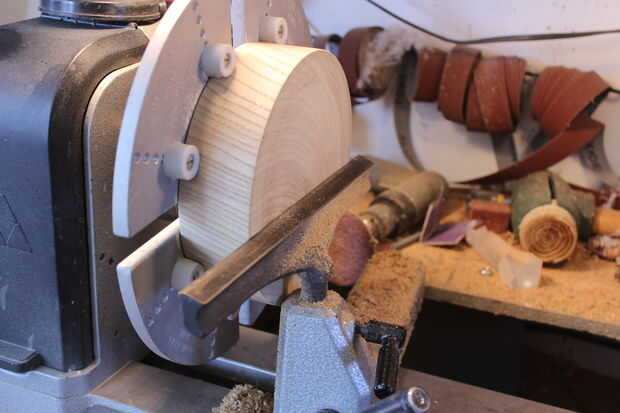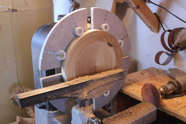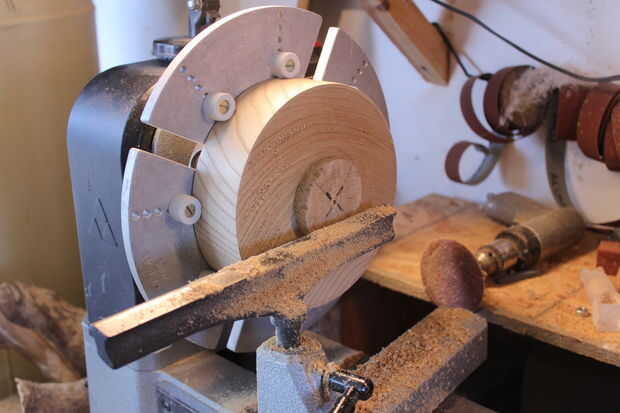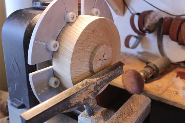 Montar la parte inferior de la bodega para el mandril con la espiga hacia fuera.