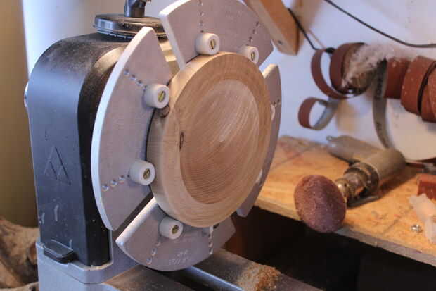 Una vez que tengas tus mandíbulas Jumbo instalado Monte la tapa del mandril con el lado sin terminar mirando hacia fuera.