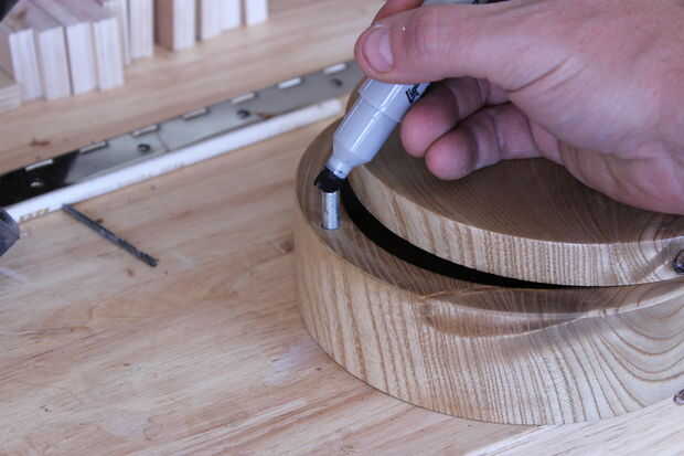 Esto es un poco complicado, pero lo siguiente que haces es marcar el lugar para la parte inferior de la tapa. Recuerde a su grano como haces esto. la mejor manera que he encontrado para hacer esto es quitar el pasador completamente y alinee el grano. Entonces use cinta de pintores de darle un punto de espera mientras que reemplace el perno en el agujero y uso un marcador de la marca buena. y reemplazar rápidamente la parte superior a la posición correcta y presione en el pasador. Esto debe darle una visual bastante decente en cuanto a donde hacer.