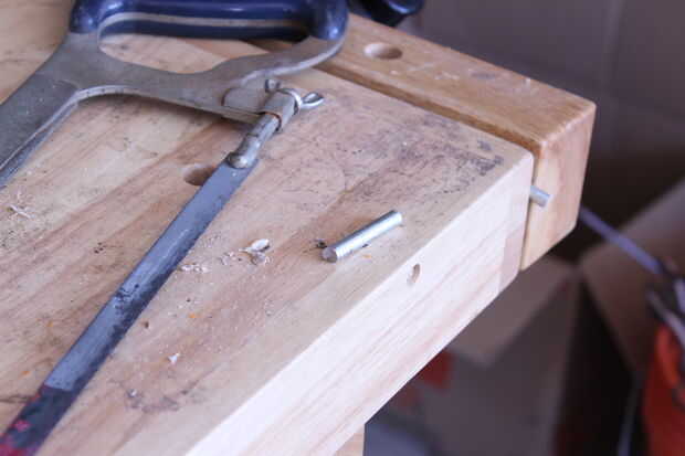 Lo primero que tienes que hacer es encontrar un broche de metal. Usé un tornillo. Corte la cabeza y la parte no roscada usando una sierra para metales. Luego usé un archivo y papel de lija para limpiar los bordes.