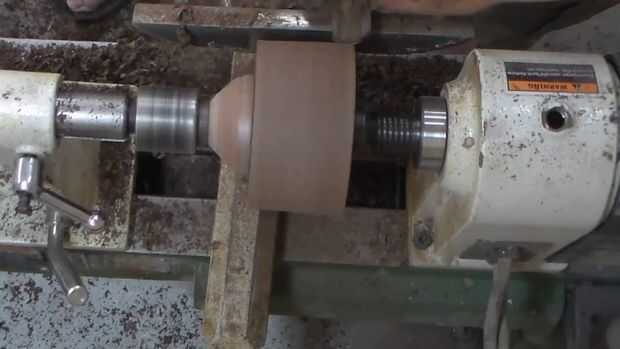 Así que empecé con un bloque de madera de 2" de espesor y 3" Plaza. La giré entre centros en el torno para redondear las esquinas y arena hasta grano 220.