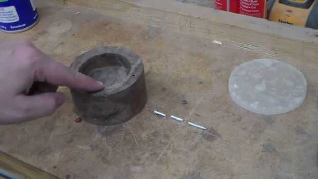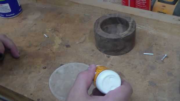 Luego alineados de la tapa y presiona hacia abajo en la base. Esto me dio una muesca por donde perforar el correspondiente 1/8" agujero en la tapa. Pegamento el segmento de clavo en la tapa con algunos super pegamento (o epoxy de 5 minutos) y esperar a completamente seco antes de volver a montar.