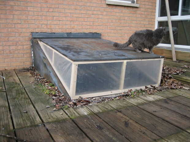 Picture3: Realmente el primer paso. Marco básico construido in-situ, cubierto de visqueen temporalmente. Estaba parado en él fácilmente con todo mi peso. No no saltas en las azoteas de todos modos. La azotea tiene un montón de ladera de nieve y lluvia., ventana frente inclina en la parte inferior, proporcionando su propio alero. El labio acero sirve como riel de goteo.