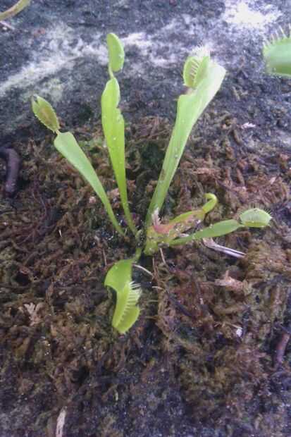 Trampas de la mosca de Venus (Muscipula de Dionaea) actuará como su planta de advertencia para muy poca luz y comenzará a crecer hojas largo delgadas, conectadas a las trampas