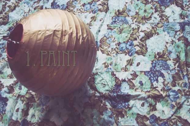 a menos que el farol es ya el color que desee, pintura de aerosol lo un color que se mezcle bien con las plumas. Fui con oro metálico. Tenga en cuenta que la linterna todavía lanzará un brillo el color del papel original cuando las luces se encienden.
