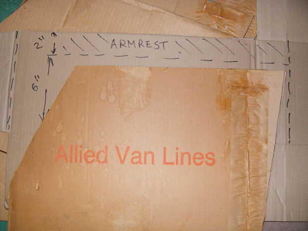 El espesor de la consola de lado debe ser 6 pulgadas. En la parte superior, incluyen un adicional de 2 pulgadas de ancho para actuar como un punto de unión de los brazos de madera del faux que haremos más adelante. Prueba cabe en su silla real y corte el soporte apoyabrazos donde sobresale la consola lateral.
