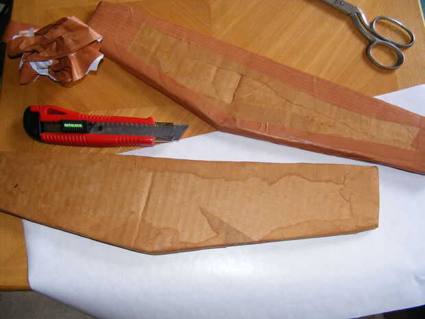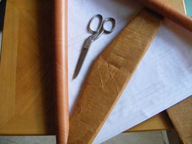 Preste atención a lo que el grano debe estar en ejecución, a lo largo de la longitud del brazo. Corte ranuras en los puntos donde el papel de plataforma de línea curva no como en las esquinas para asegurar una cubierta lisa.