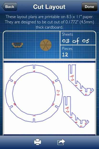 Uso de Autodesk 123D MAKE en un iPhone, he creado una forma del perfil que fue rotada alrededor de un eje. La aplicación "planearon" en un archivo PDF que enviado por correo electrónico a mí mismo.