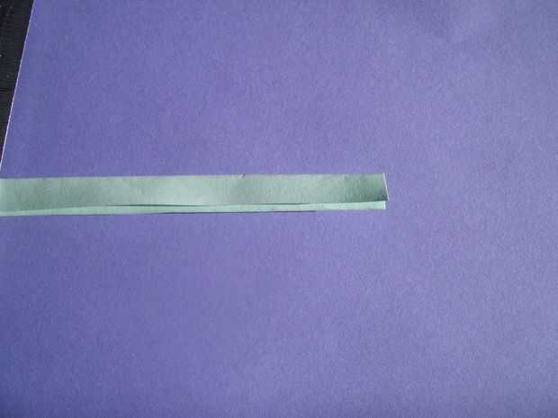 Dobla cada tira a lo largo dos veces. Para ello primero plegable en un borde largo en un tercio (resultando en una franja de 2/3 de su ancho original) y luego doblando en el otro borde largo para satisfacer el primer doblez. Esto producirá una tira de triple capa que es 7-8mm de ancho.