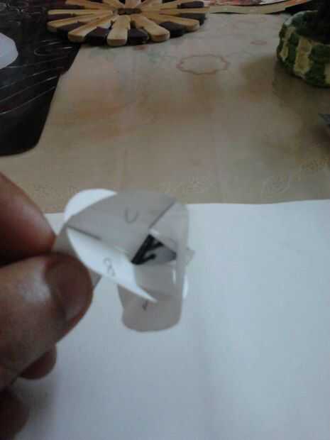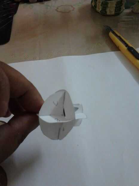 Un títere operado por la cadena con los ojos y los párpados móvilesEquipo:-Una cara en papel maché, papel maché-4 pelotas de ping pong-alambre-2 palillos de dientes-banda elástica 2-cadena-2 trozos pequeños de madera o plástico-1 Cruz de madera-4 aro
