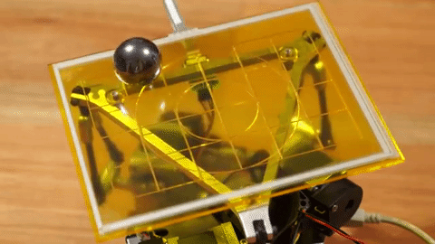La perilla de control de cuadratura se usa para ajustar los valores durante la operación. El IDE de Arduino serial monitor se puede utilizar para mostrar los valores. El primer valor que aparece es el tiempo del lazo de control principal en nosotros. Este valor no debe superar 5 ms como es el intervalo de llamada del bucle principal. El botón de cuadratura se usa para avanzar al siguiente valor. Los siguientes tres valores son proporcionales, derivado e integradas ganancias. Estos valores se pueden ajustar con el mando para conseguir la afinación deseada. La bola debe pasar rápidamente a la ubicación conjunto con mínimo overshoot. Los valores se perderán durante el ciclo de alimentación por lo que debe ser manualmente entraron en el código después de templar. Valores de desplazamiento para las direcciones X e Y se pueden ajustar después. La bola se compensará de la posición deseada si la plataforma no está nivelada y no se utiliza la ganancia integral. Cambiar los valores de desvío para centrar la bola en la plataforma cuando se establece el "modelo 0". Patrones de pelota diferentes pueden seleccionarse con 8 patrones actualmente programados utilizando ecuaciones paramétricas. La tasa de movimiento de la bola también se ajusta con la variable "tasa de patrón"; números más pequeños equivalen a más rápido movimiento de la bola. El valor final es "dirección de patrón", que establece la dirección del movimiento de la bola.