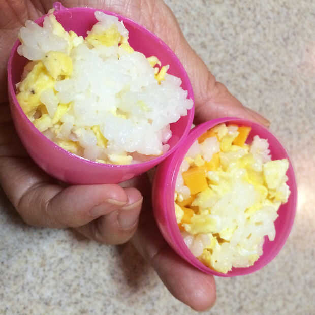 Poner la mezcla del arroz en huevo de plástico y sacúdalo.