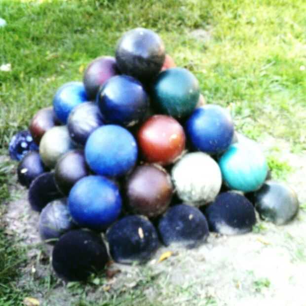 Así que ahora que todo el mundo sabe que tiene una pirámide de la bola de boliche, que has tenido un rato, incluso tienes algunos bolos extras para poner alrededor de la yarda. (tratamos de Croquet grande, pero un mazo no mueve una bola de boliche muy lejos en todo, y duele!)