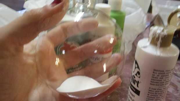 Vierta la pintura en el ornamento y comienzan a agite rotatoria la pintura en el ornamento.