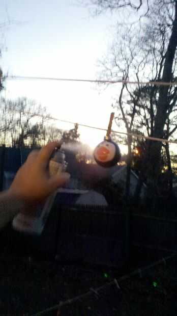 Después de haber terminado de decorar tu ornamento, rocíe el ornamento con una capa clara de Krylon.