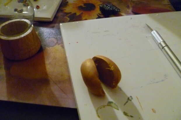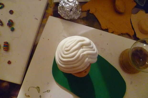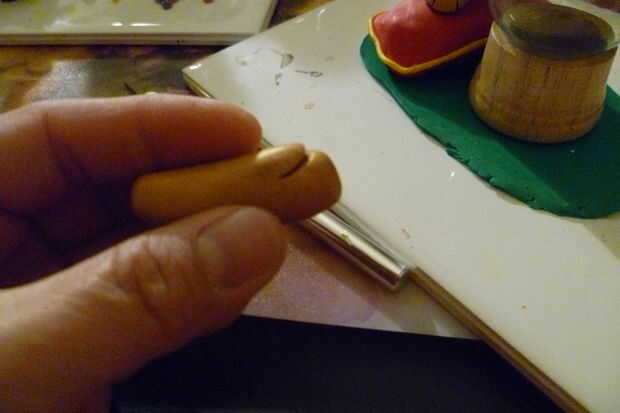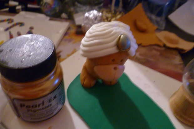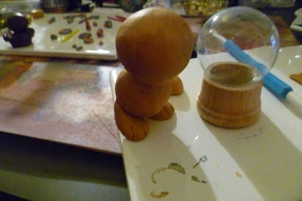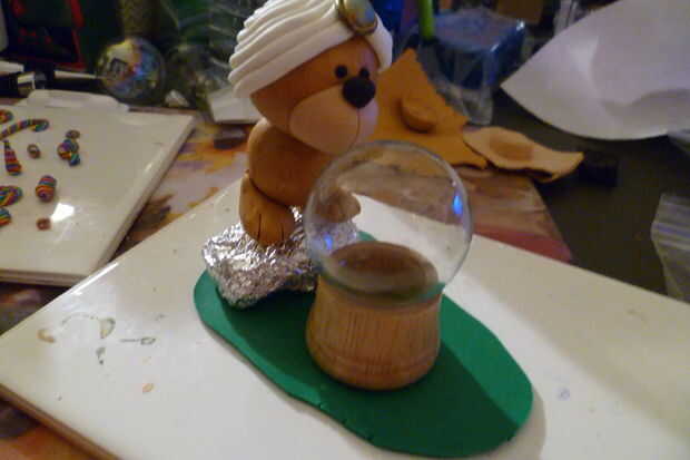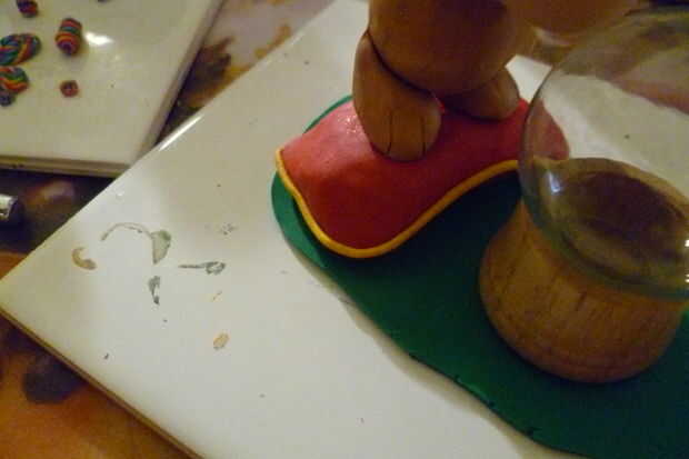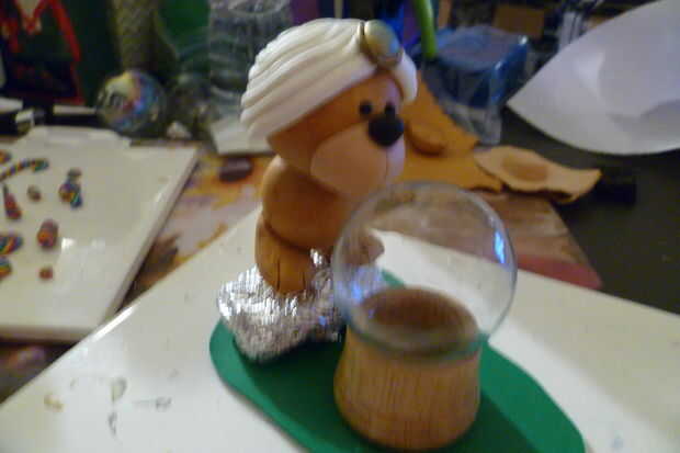 No Foto - tomar una lata vacía de frutos secos y Voltéela boca abajo. Cubrir la lata con arcilla verde y poner el oso en la parte superior. Asegúrese de que la tapa todavía se puede caber sobre el barro. No comprobarlo cuando al horno el recipiente y terminó encima de tener que recortar algunas de la arcilla. Me puedo volver más tarde y crear una tapa de arcilla en su lugar.