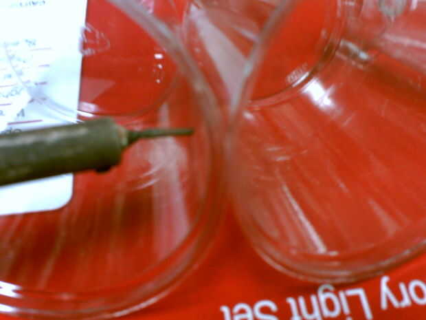 Para empezar coge un par de vasos de plástico y tu soldador. Mantenga las copas al lado del otro y hágale un agujero con el soldering iron en la base de las copas y uno en la parte superior de las copas. Dejarla enfriar brevemente y dar un apriete con los dedos.