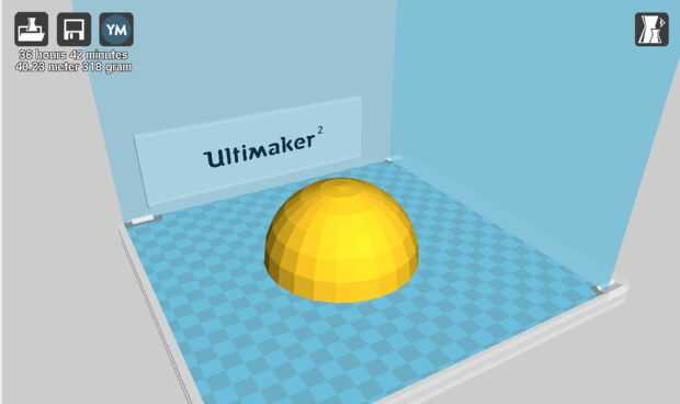 Importamos el modelo de Cura, un programa donde se pueden hacer los modelos de la impresora 3D. Asegúrese de observar las capas de cual pelota se construye, a veces el programa lo rellena todo el modelo, pero no necesitas una bola masiva. También tarda mucho más tiempo en imprimir un modelo cuando está totalmente lleno.