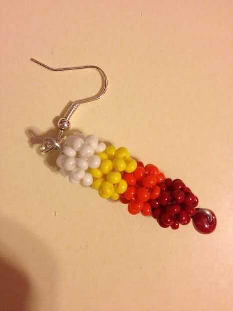 Atar los extremos del hilo y cortar. Pegar un headpin en la parte inferior de la pieza todo el camino hasta la parte superior. Alicate para crear un bucle en la parte superior y conectar ya sea directamente al gancho de pendiente o un anillo del salto que luego conectas. Si no tienes un pin lo suficientemente largo, use alambre para hacer un perno del ojo. I mina decoradas con un grano muy rojo. Gracias por leer y si fuera, no sean tímido; mostrarlo en los comentarios :)