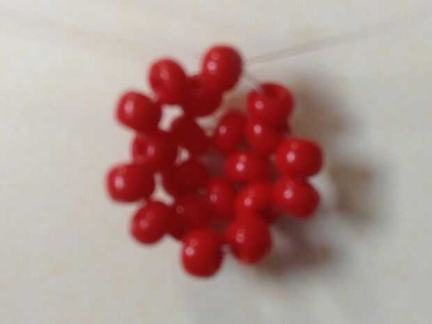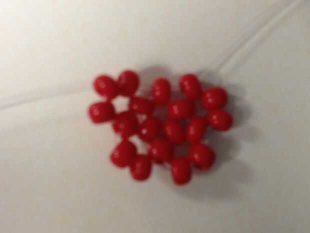 Bueno, casi. Al final de este paso habrá completado la mitad de una bola de abalorios. Siga las últimas dos instrucciones del paso 3 hasta que haya algo que se ve como el mío (4 bucles conectados a la central. Parece que hay una falta en la parte superior, usted sabe) habrá completado estas instrucciones 3 veces en este punto, usted necesita a su hilo izquierdo a través de las dos cuentas a la izquierda (debe ser claro ver que como todas debe estar apuntando en la misma dirección). A la derecha, dos granos de la secuencia y terminar el bucle final (por este medio, de todos modos) con el último grano. Ahora tienes una media bola con cuentas :)