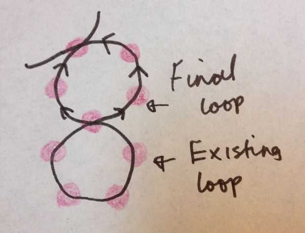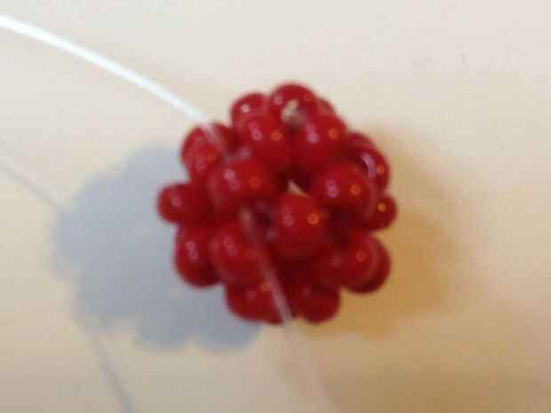 Finalmente! ¡ UF! Este paso se ve un poco diferente. Tomar el hilo de la izquierda y pasar por las siguientes dos cuentas a la izquierda. Cadena una bola a la derecha y pase la cadena izquierda a través de él en el lado opuesto para cerrar el ciclo. Hay un lazo final que no es reforzado. Es el que está al lado del bucle que acaba de terminar (estará por encima o tal vez debajo del bucle acaba de terminar). Usted debe ser capaz de ver. Para reforzarlo y terminar la bola de abalorios, la cadena de derecha a través de tres de los granos más cercanos a él del hilo de rosca y rosca a la izquierda a través de dos. Ahora tienes una bola de hecho. Yay :)