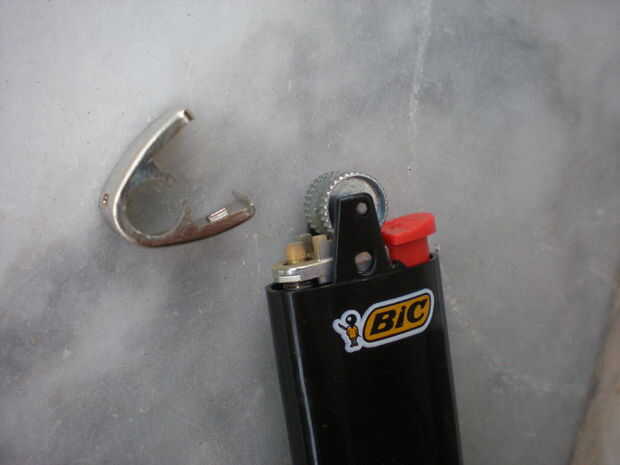Todo lo que necesitas hacer es saque el protector de llama metal en la parte superior del encendedor. Puede hacerlo fácilmente con los dedos.