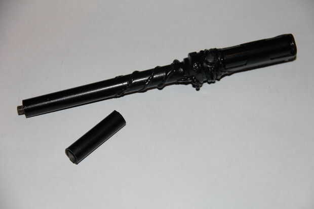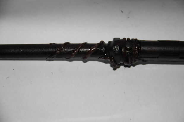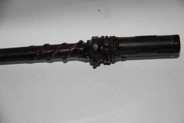 A continuación alternaba entre la pintura marrón y negro acrílico/pintura para conseguir una varita negra sucia con detalles en marrón.