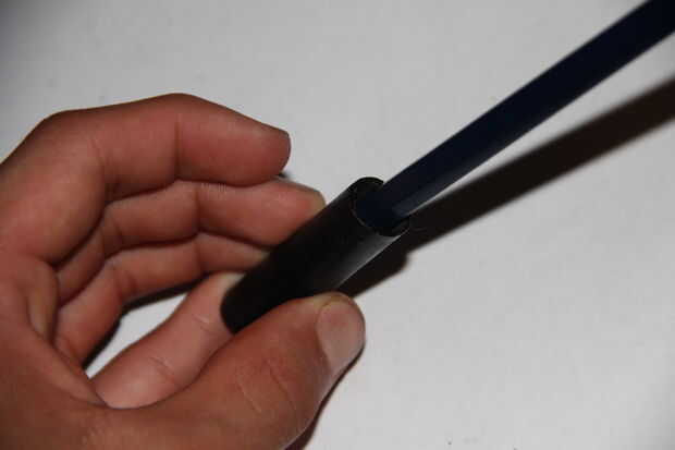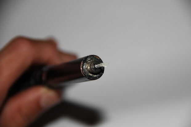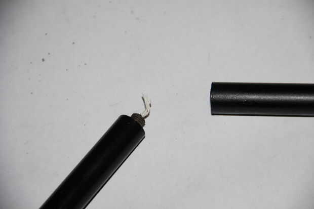 Si tienes algodón flash apenas cargue el algodón flash en el cañón antes de cargar el documento de flash. Si no tiene algodón flash (como yo) tomar una pequeña tira de papel flash y ponerlo en la bujía hasta junto a la bobina del calentador. antes Atornille el tubo más pequeño en el tubo.