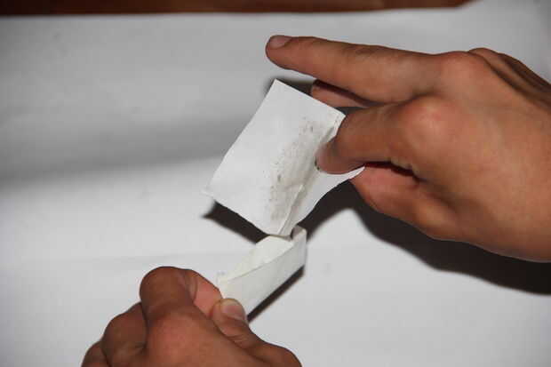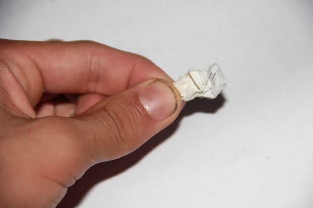 Ahora toma su papel flash y dóblela e introdúzcala en una bolsa para que usted puede llenar de polvo espumoso o polvo espumoso temp baja. Entonces crujir la bolsa para arriba en una bola. Cargar la bola en el extremo del tubo más pequeño con un lápiz u objeto similar.