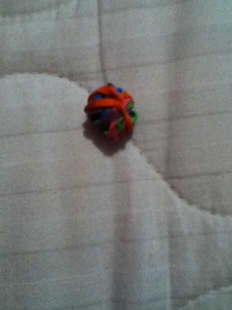 Combinar granos de acrílico y colores gomas para hacer esta bola de telar de arcoiris 3D lindo fácil! Necesitarás 7 gomas de colores (puede encontrarse en Pandahall.com ) para hacer esta bola de banda elástica. Esta bola de telar del arco iris colgan