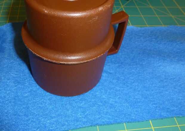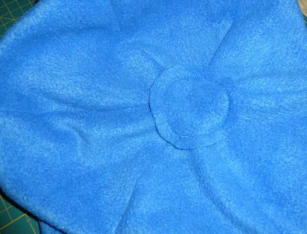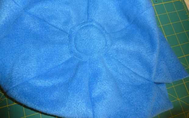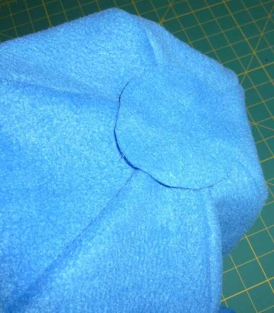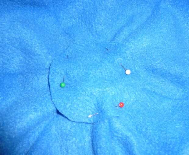 Corte dos círculos con una taza (o cualquier cosa redonda). Los círculos del perno en la parte exterior de la bola, luego coser con puntada recta alrededor del círculo para unir a la bola.