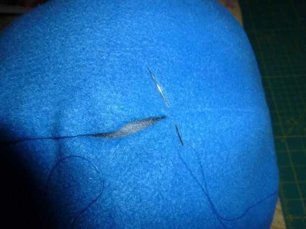Cuando esté satisfecho con la cantidad de relleno, mano coser la última parece cerrado. Fui con una puntada del azotey acabo de ir a través y a terminar justo donde empecé a coser.