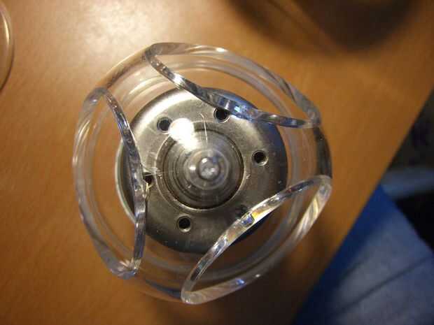 ¿Ver cómo gravedad tipo de "quiere" a centrar? Si tu motor tiene 6 agujeros, alinee los agujeros de destino a lo largo de la plástica "vigas" y los otros 3 orificios a lo largo de las curvas de los exteriores de las "vigas". Ahora, usando la llama y un clavo grande, quemar agujeros en el plástico directamente sobre los orificios roscados en el motor. Trate de no ir a través de todo el camino. Lo último que desea es goteo de plástico fundido en el motor. Utilizar el exprimidor-como cosita al archivo de los orificios.