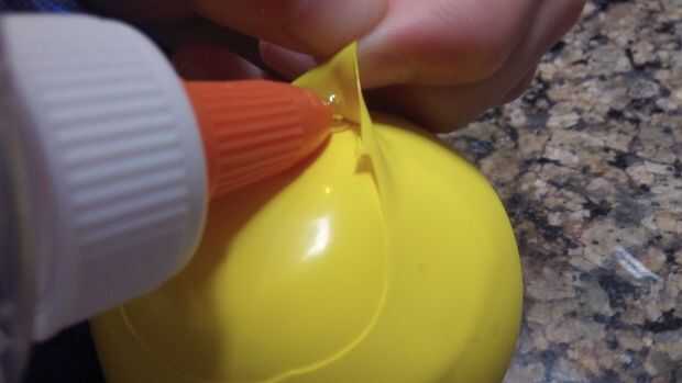 Pista los bordes del segundo balón hacia abajo en el primer balón. Recomiendo usar Super Glue.