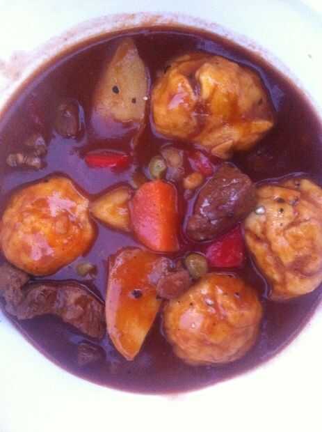 bolas de masa hervida son buen invierno sano alimento. Estas son 100% vegetarianos. Se puede añadir a casi cualquier sopa o guisado, pero aquí han sido abandonados en una mantequilla frijoles y menestras. Desciende muy bien con pan recién hecho y la