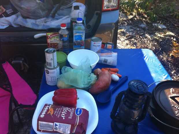 Bola de masa hervida carne guiso para acampar. (1 / 6 paso)